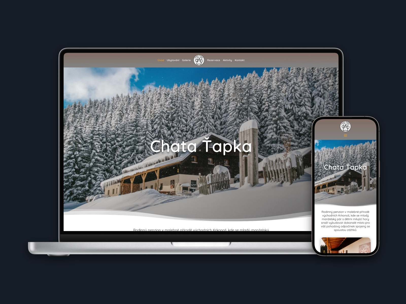 Web pro Chatu Ťapku vznikl s cílem vytvořit přehlednou a přívětivou prezentaci ubytování v přírodě, kde si návštěvníci mohou odpočinout a načerpat nové síly. Atmosféra chaty je rodinná a útulná, a tak jsem chtěl, aby se stejný pocit přenesl i do vizuální podoby webu.